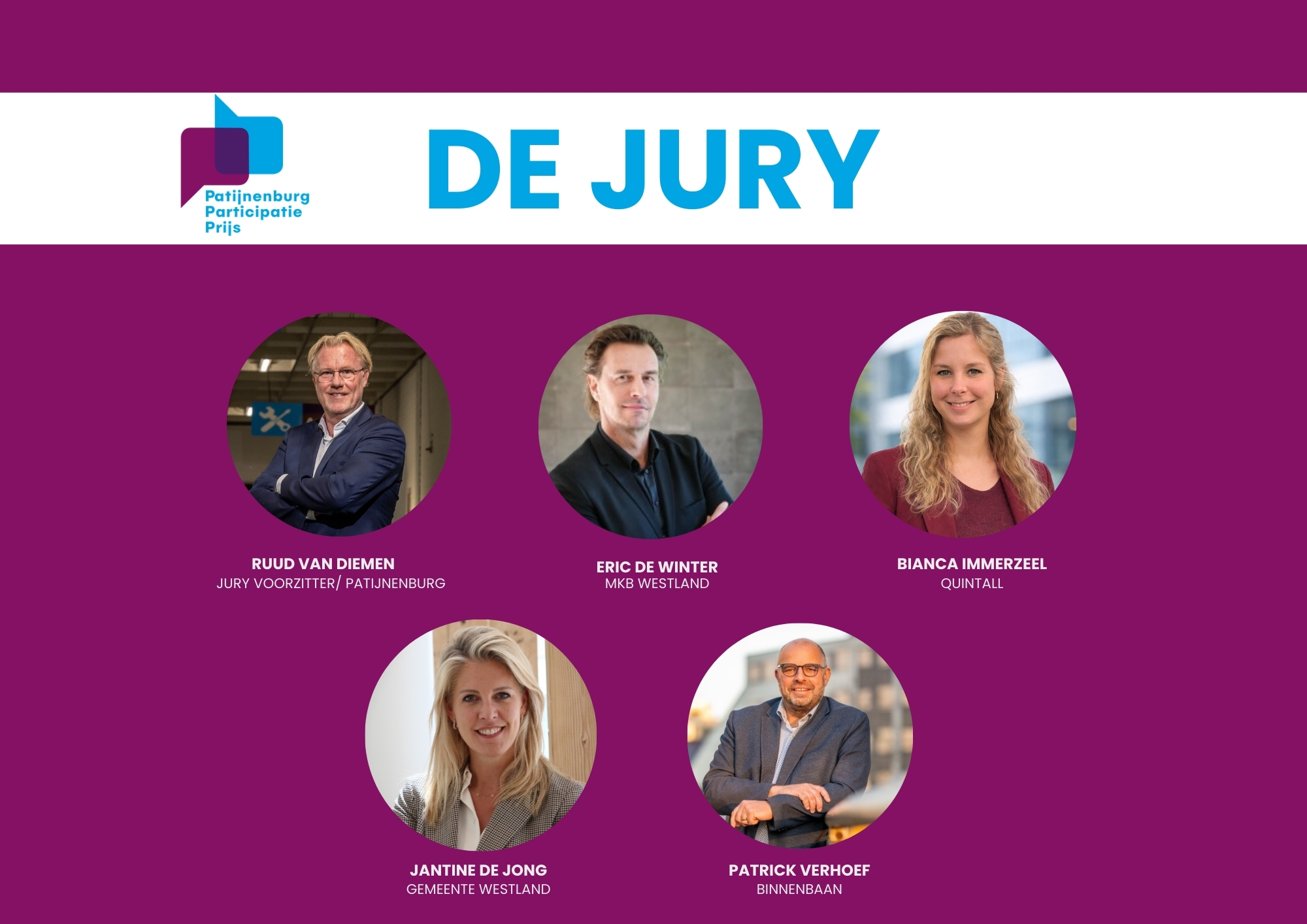 Met trots presenteren we de juryleden voor Patijnenburg Participatie Prijs! Deze experts uit verschillende sectoren staan klaar om de ondernemers van Westland te beoordelen op hun toepassing van participatie binnen het bedrijf.