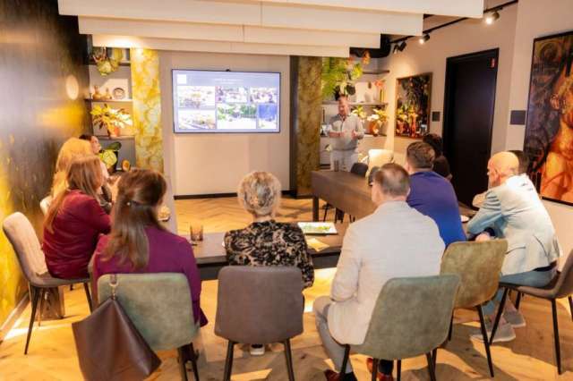 Bij aankomst werd de delegatie hartelijk ontvangen door Leila en Martijn Poortvliet van Don Hoveniers, die met zichtbaar enthousiasme vertelden over de uiteenlopende werkzaamheden: van ontwerp en aanleg tot onderhoud. Martijn Poortvliet benadrukte tijdens het bezoek: “We willen tuinen maken die mensen raken én die toekomstbestendig zijn. Vakmanschap en duurzaamheid gaan voor ons hand in hand.” De rondleiding liet zowel de ambachtelijke kant van het vak zien als de innovatieve ontwikkelingen waar het bedrijf volop mee bezig is.